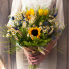 Авторский букет с подсолнухами и ромашками