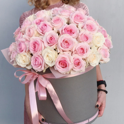 Коробка с розовыми и белыми розами | Купить в Лобне