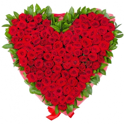 Композиция из 101 розы в виде сердца с доставкой в Лобне