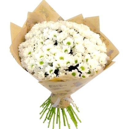 Букет из ромашковых хризантем в крафте
