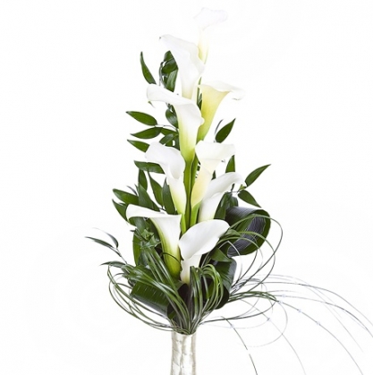 Вытянутый букет из калл и берграсса