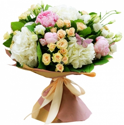 Букет Талисман | Пионы и гортензия с доставкой в Лобне