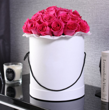 Темно-розовые розы в коробке