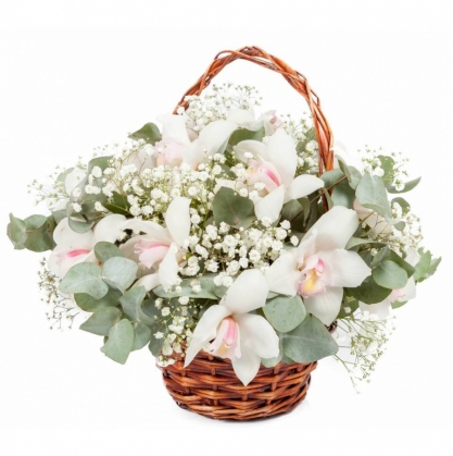 Корзина белых орхидей "Воздушный поцелуй" | Купить в Лобне