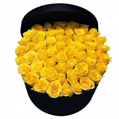 Яркие, желтые розы в шляпной коробке. Можно купить в нескольких вариантов. Розы Эквадор, премиум.